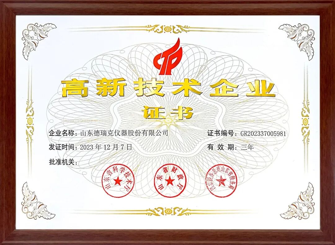 喜报频传|热烈祝贺德瑞克仪器再获“高新技术企业”证书